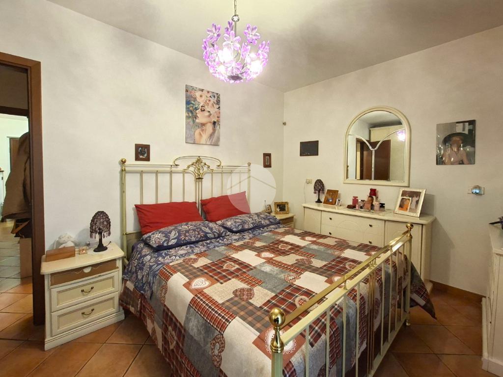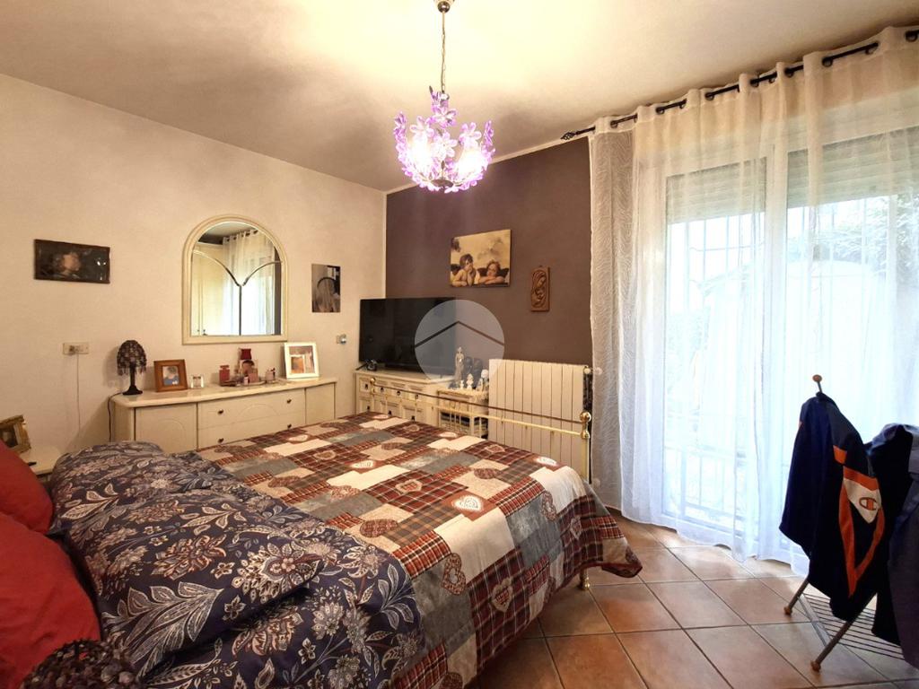 La zona notte è composta da un disimpegno ben organizzato con una pratica armadiatura, dalla camera matrimoniale, anch’essa dotata di uscita sul giardino e dal bagno accessoriato di doccia.