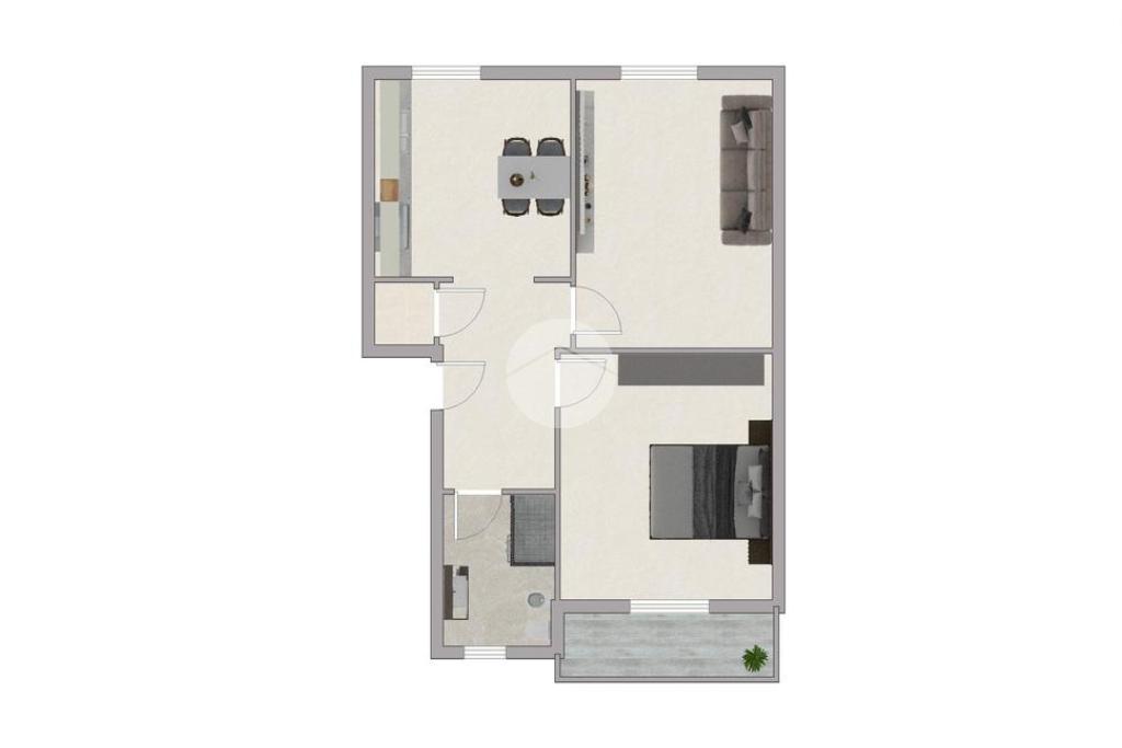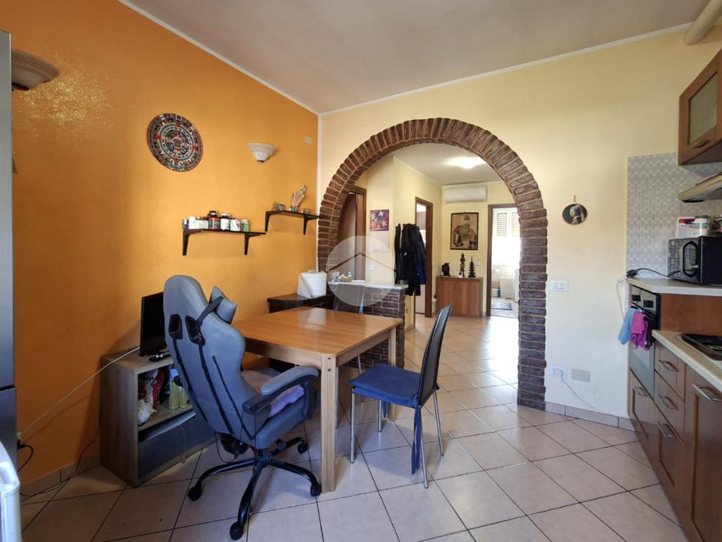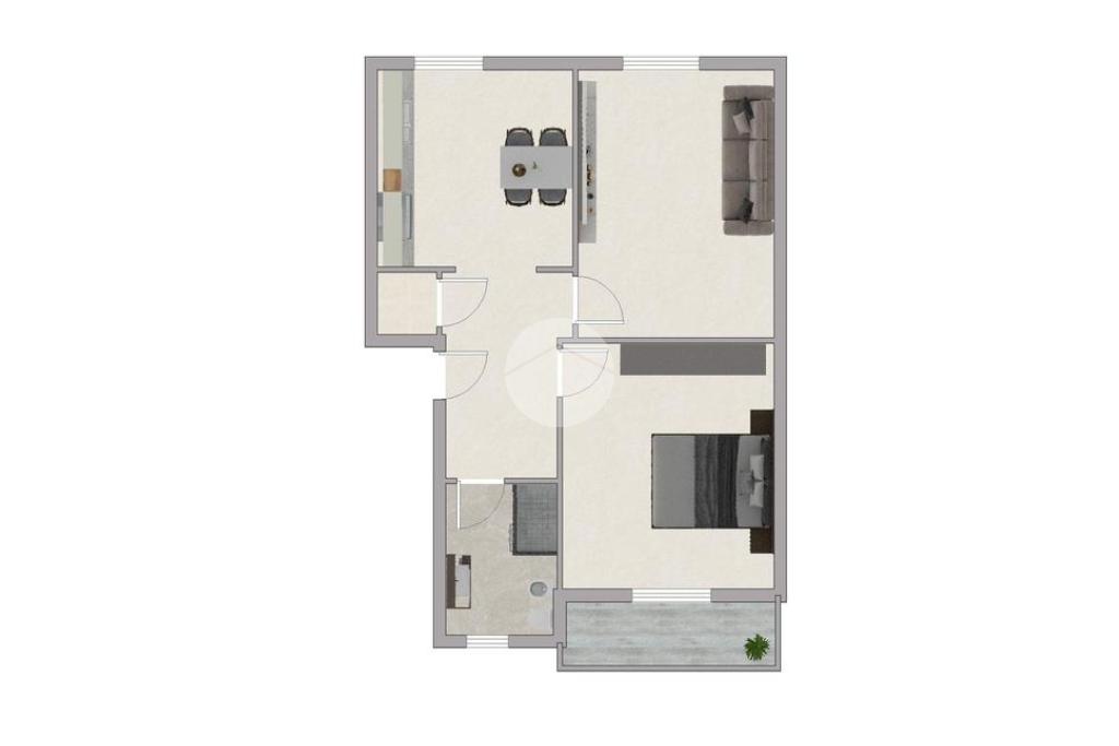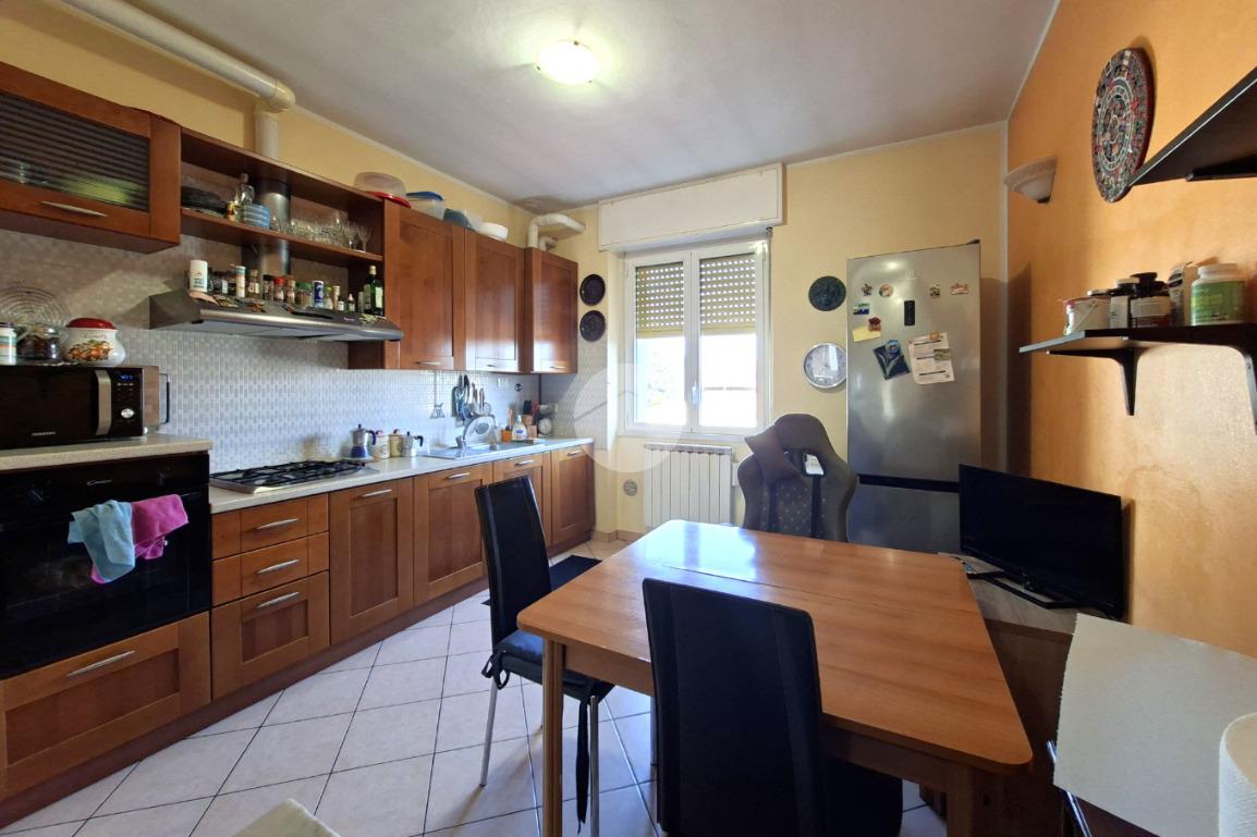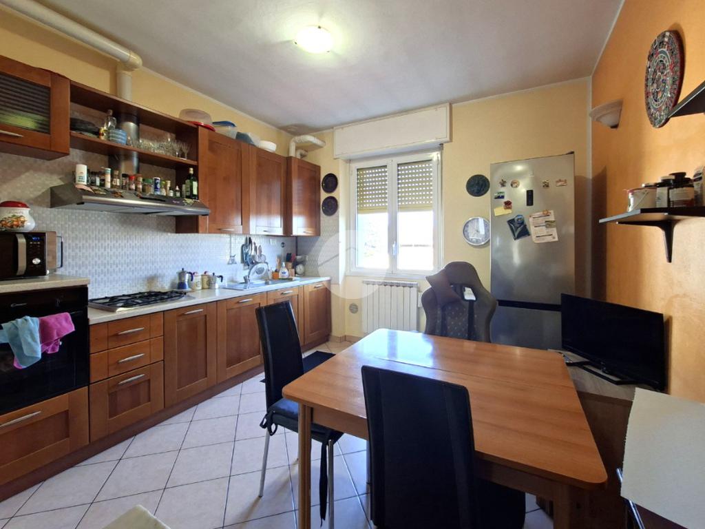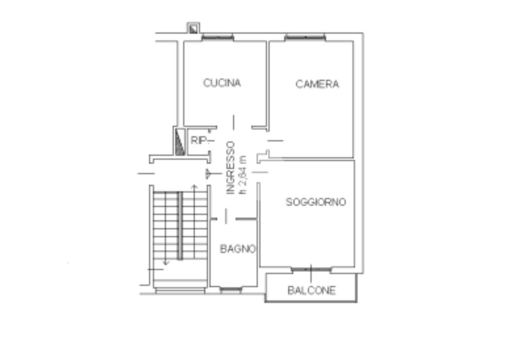 L’ingresso si apre su un comodo disimpegno che distribuisce in modo funzionale tutti gli ambienti. La cucina è abitabile e resa particolarmente accogliente dal muretto con arco che la caratterizza. Il soggiorno, di generose dimensioni, è valorizzato da un pratico balcone.