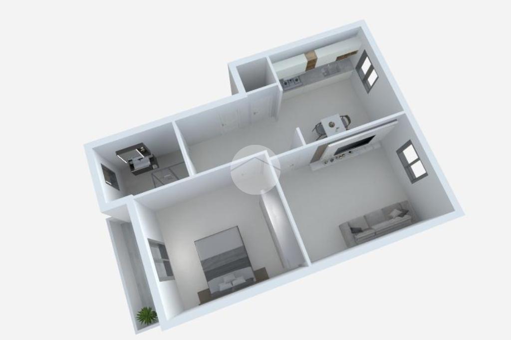 Completano l’abitazione un bagno finestrato con doccia e un utile ripostiglio.